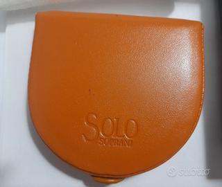 Porta spiccioli in pelle SOLO SOPRANI. Disponibile nei colori ocra e rosso.
