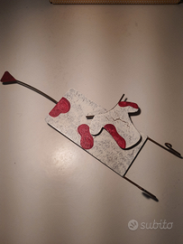 Portaoggetti, con ganci per appendere strofinacci o chiavi dalla divertente e colorata forma di mucca. Marca Oxidos Colombia, Commercio equo e solidale. Dimensioni: 34x12 cm c.a.