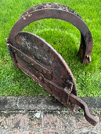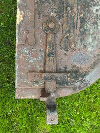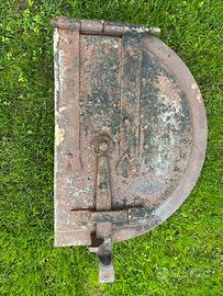 Porta tagliafuoco in ferro di un antico forno a legna per la cottura del pane datato anni 1920-25.