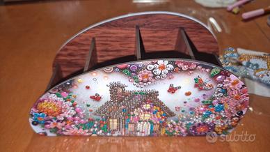 Porta telecomando e cellulare nuovo fatto a mano con la tecnica del diamond painting.