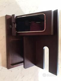 Supporto in legno per smartphone portafoglio, orologio Regalo da uomo Marito Moglie Natale Regalo per papà Supporto da comodino Legno massello in frassino (Marrone) Elegante e funzionale utilizzabile in ufficio e/o casa. Astenersi chi non realmente intenzionato all’acqusto