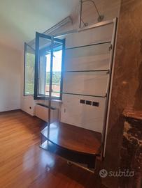 porta televisione girevole, appoggiato a terra e ancorato alla parete. acciaio, legno e pino