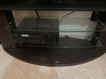 Porta televisione escluso di televisore con mensoline in vetro e porta oggetti laterale