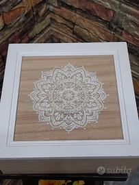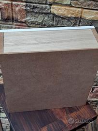 porta the in legno a 4 scompartimenti colore legno chiaro e chiusura con un disegno centrale bianco tutto integro