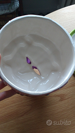 Porta torta in porcellana, di piccole dimensioni (diametro 16cm). Scheggiato il vassoio, causa trasloco, in perfette condizioni per il resto.