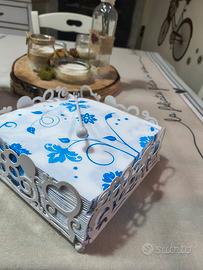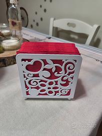 - Porta tovaglioli piccolo bianco in metallo con decorazioni fiori e cuori