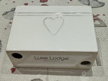Porta-tovaglioli da tavola, in ceramica bianca con decoro a cuore, ‘Luxe Lodge Massachusetts’, perfetta in ogni dettaglio, la vendo per inutilizzo.