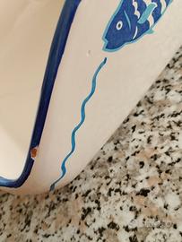 Porta Tovaglioli da tavolo, Made in Italy, dei Fratelli Colì di Cutrofiano, Maestri della terracotta e delle Maioliche Salentine, il porta tovaglioli ha piccoli difetti artigianali, sui due bordi laterali, guardando la prima foto, neanche si vedono, disegni pesce e stella marina,misure 22x22
