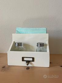 Porta tovaglioli in legno, perfetto per aggiungere un tocco vintage alla cucina o alla tavola. Stabile, pratico e dal look rustico, ideale per tovaglioli di carta o stoffa con spazio frontale per riporre sale e pepe. #portatovaglioli #shabbychic #cucinaVintage #arredoCasa #rusticstyle
