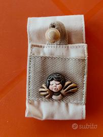 Coppia portatovaglioli in stoffa e ceramica. Uno con cuore e l' altro con angelo.