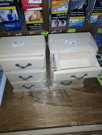 Oggetto immancabile in una cucina moderna elegante che può fungere anche da centro tavola in offerta assieme a 4 portagioie in legno ad un prezzo totale di 10 euro per 5 prodotti cioè 1 portatovagliolo più 4 cassettiere portagioie in legno con 3 scompartimenti ognuna che aspetti è un affare