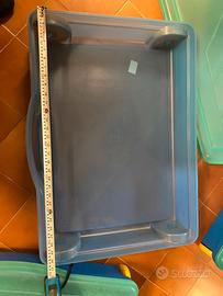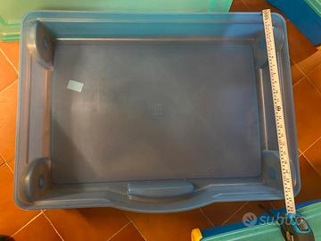 N.3 Porta tutto, giochi L, vestiti etc etc. Si infilano sotto il letto o si impilano, Dimensioni L 80 cm, P 57 cm, H 15 cm Euro 10 cad.