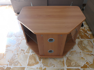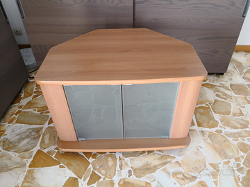 Mobile porta TV con rotelle dimensione 78 L x 55 P x 52 H dotato di ripiano in vetro interno e asole passacavi sul retro