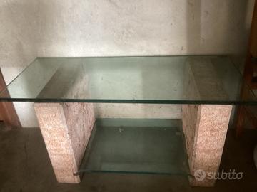 Vendo tavolino o porta tv o altro in cristallo e supporti laterali in marmo rosa Verona, presenta una sbeccatura in un angolo come da foto