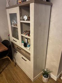 Vendo un ripiano porta tv (composto da sportello, due cassetti) e credenza stesso stile con tre vani, una vetrata e tre ripiani a giorno. I mobili sono in ottime condizioni, non hanno grossi segni di usura. Le dimensioni sono 180x52x52 (per il porta tv) e 107x40x160 (per la credenza). Sono in zona Santa Maria delle Mole