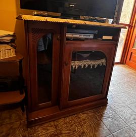 Vendo 2 mobili in ottimo legno tenuti bene,sono entrambi porta Tv. Uno ha sotto 1 ripiano,2 sportelli e interno capiente con porta riviste laterali!L'altro sotto ha ripiano porta Dvd e sportello x porta bottiglie(bar) Il prezzo e x entrambi i mobili.Prezzo trattabile.