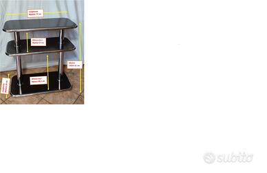 Il mobile è smontabile e ciò permette di modificare, volendo, l'altezza del ripiano centrale rispetto l'attuale configurazione (vedi foto), posizionandolo a di 22 cm dal ripiano più in basso e 49,5 cm da quello superiore, semplicemente invertendo l'assemblaggio della coppia di colonnine in acciaio Ø 60 mm con lunghezza 23 cm con la coppia di colonnine di lunghezza 50 cm.