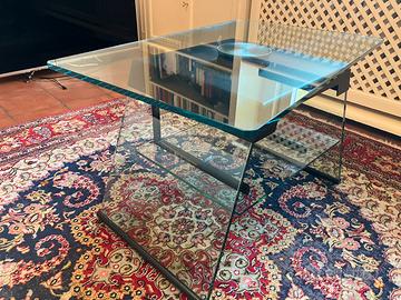 Porta TV in cristallo, design FIAM con piano rotante per indirizzare il vidro nella direzione desiderata con piano per videoregistratore hifi o altro da collegare al tv
