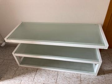 Porta TV in cristallo con ripiani utilizzabili anche cone porta oggetti, computer, ecc..