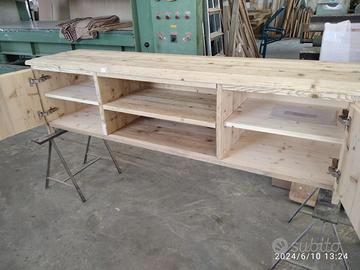 Porta tv in legno vecchio di antichi solai e parancole recuperati levigate leggermente in modo che siano morbide al tatto mantenendo la pattina originale naturale che il tempo ha fatto con misure lungh. 200 prof. 50 h 55 con 2 porte laterali e 1 ripiano centrale a giorno, nei 2 vani laterali ci sarà ripiano aggiustabile interno tramite perni. Ogni porta avrà 4 frontali applicati su apposito pannello con applicato relative manigliette a finestrella e lo schienale avvitato nel retro. Completo di cerniere regolabili da cucina per apertura delle ante e con maniglie e di finitura trasparente impermeabilizzante naturale in modo che non alteri il colore del legno, franco fabbrica non comprendente di iva compreso di imballo. porta tv già costruito e venduto su commissione non teniamo magazzino ma essendo i diretti produttori possiamo fornirlo a misura e specifiche del cliente. per domande o dubbi contattateci P.S. eseguiamo MOBILI SU MISURA sempre con legno di abete antico o altro per noi conta dare vita al vostro sogno DIRETTAMENTE DAL PRODUTTORI. ASTENERSI RIVENDITORI E COMMERCIANTI