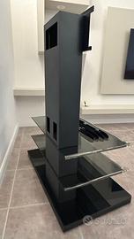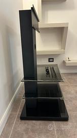 Mobile Porta tv in metallo e vetro marca Munari, Fino a 55 pollici con rotelle e colonna passacavi compresa la staffa per la tv, nessun graffio e scheggiatura