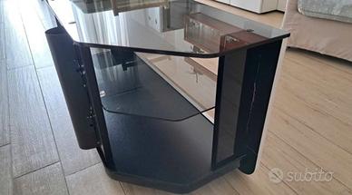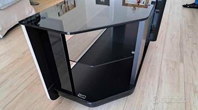 Struttura solida con finitura lucida e tre ampi ripiani in vetro nero