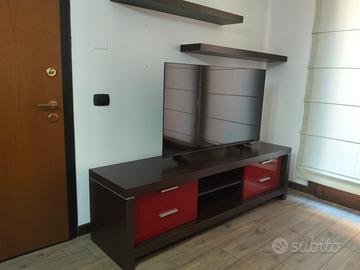 Vendo porta TV in ottime condizioni, stile moderno ed elegante. Struttura in wengé scuro con mensole abbinate e cassetti in vetro rosso, perfetto per completare l’arredo del soggiorno con un tocco di design.