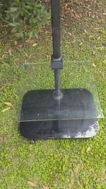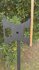Solo consegna a mano. Porta TV/monitor a quattro ruote, bloccabili. Altezza massima raggiungibile 140 cm, misure piatto vetro trasparente 40 cm x 35 cm, piatto vetro sotto 64 cm x 43; la piastra a cui va fissata la tv o il monitor è 21 x 21 cm. In ottime condizioni.