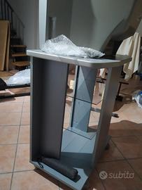 Carrello porta TV con ruote, 2 ripiani in vetro colore grigio. Ottime condizioni altezza 84 larghezza 74 profondità 46.