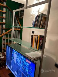 Porta tv Porada Ubliqua in perfette condizioni, 3 piani in cristallo da cm 100 x 28 + 1 piano in lego porta tv da cm 110 x 50 + 1 piano in allumino porta decoder da cm 100 x 45 cm