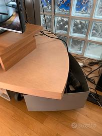 Porta Tv Cattelan italia in legno e metallo con ruote, ripiani in vetro e vano a giorno inferiore