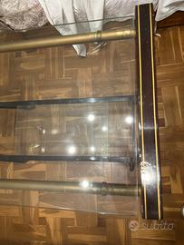 Vendo carrello porta TV/hi-fi in stile vintage, con struttura in metallo nero, barre finitura ottone e ripiani in vetro.