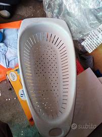 4 allegri porta uova 5 euro ; scola verdure , spaghetti 5 euro ; tazza termica in vetro e inox con vassoio inox 20 euro , mortaio con pestello in ceramica vintage ottimo per pesto basilico pepe , ecc..15 euro , vassoio verde Robex misura 46x31 cm 40 euro , vassoio in melamina decorato misura 47x29 cm 50 euro ,solo contatti telefonici , sms , chiamate , whatsapp