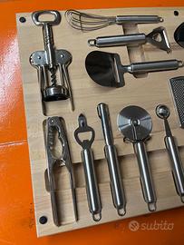 Portautensili Gourmet-line marca Essetre in faggio con utensili in acciaio inox 18/10.