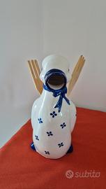 Vendo porta utensili da cucina in ceramica a forma di anatra, con decori in blu cobalto e un fiocco stilizzato. Altezza 25 cm. Ritiro a mano a Roma zona Vitinia oppure Trastevere.