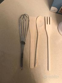 Porta Utensili completo di utensili. Compresi frusta e 3 utensili in legno (forchetta - cucchiaio - spatola)