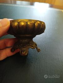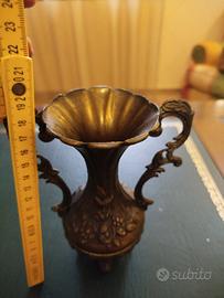 Porta vaso anfora Vintage nani 70 in ottone, in ottime condizioni con segni normali di usata sel tempo. Oggetto di molta atmosfera. Altezza 18 cm larghezza 8,5.