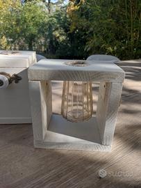 porta vaso di legno con due maniglie e un vaso di vetro. fatto a mano. ho usati per un matrimonio (vedi foto).
