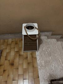 Trittico in legno e canapa,utilizzabile come oggetto d arredamento in stile country shabby chic, porta fiori o porta candele, utilizzabile anche come porta ombrelli euro 50 vintage