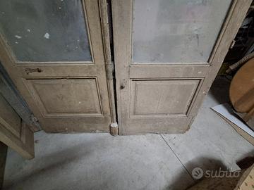 Vendo porta vecchia in legno a due battenti. Dimensioni cm 140 x h cm 225. Senza telaio Ottima base per restauro