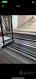 Usato solo una volta porta vestiti e scarpe o accessori. Alto 170 cm profondo 90 e con lunghezza sempre 90 cm. Molto capiente dato che è possibile usare entrambe le aste per appendere i vestiti e due ripiani regolabili di altezza per scarpe o accessori vari