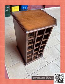 Mobiletto per Vino e Bottiglie in Legno massello, presenta uno spazio principale per 18 bottiglie, un pratico scomparto con anta per riporre gli accessori, i bicchieri o altre bottiglie e sul retro un altro spazio per poter riporre altre bottiglie di liquori o vini.