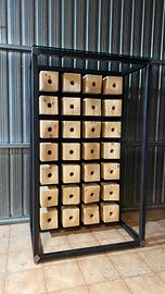 Cubi di legno lamellare da 12x12x12 cm con foro per il collo della bottiglia.
