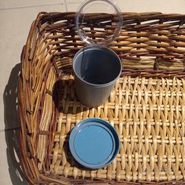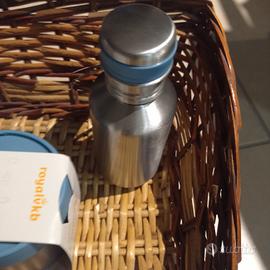 nuovi mai usati porta vivande insalatiera con accessori e posate bicchiere con inserto trasparente e tappo bottiglia in acciaio con tappo molto utili.