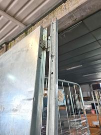 porta zincata per garage usata, si tratta di una porta in acciaio zincato completa di maniglia adatta per ambienti come: sottoscala, garage, cantine, etc.