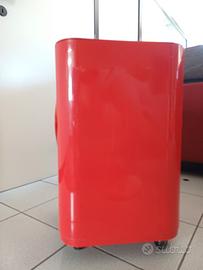 Vendo portabiancheria vintage Kartell disegnato da Anna Castelli Ferrieri. Iconico complemento di design in plastica rossa con ruote, pratico come portabiancheria, contenitore o elemento di arredo vintage. Tipico design Kartell anni ’70. Misure: • 37,5 × 37,5 cm • Altezza: 60,5 cm (ruote comprese) Condizioni: Presenta segni di usura sulla plastica dovuti al tempo e all’utilizzo. Manca un piccolo chiodino laterale. Prezzo: 150 € Ritiro a mano preferito. design italiano anni 70 modernariato Kartell originale vintage
