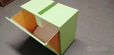 Vendo mobile sotto lavandino come da foto in legno poi verniciato ed eventualmente riverniciabile con anta ad apertura a ribalta. Misure: Larghezza 63 cm Altezza 55 cm e profondità 35 cm. Queste sono le misure dell'apertura per il sifone: larghezza 6 cm profondità 16 cm lunghezza 30 cm. L'apertura è esattamente al centro. Rimangono 29 cm per parte. L'oggetto è visibile previo accordo presso il mio domicilio .Vendita fra privati con formula visto e piaciuto senza garanzia e restituzione. Preferibile consegna a mano. Eventuale spedizione a carico acquirente e da concordare. Pagamento in contanti o con bonifico. Se interessati disponibile mobile bagno stesso stile ad anta.