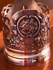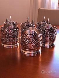 6 portabicchieri in metallo, da té anni 70 , raffiguranti il cavaliere cosacco ucraino Bogdan Khmelnytsky