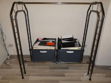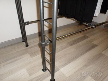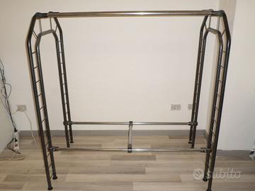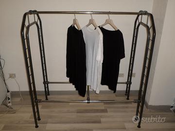 Vendesi n. 4 stender portabiti misure: Lunghezza 130 larghezza 75, altezza 133. Sono in metallo leggero, struttura di design realizzata da artigiano in stile traliccio americana. Viste le misure è adatto per t-shirt o altri capi non particolarmente alti. Volendo è possibile far realizzare un ripiano sopra e uno alla base per essere utilizzati come display di scarpe o altri oggetti. Noi li avevamo in showroom ma sono adatti anche per un negozio o una casa per una persona creativa. 150 euro ciascuno, sconto se acquistati tutti insieme. Possibilità di consegna previo pagamento anticipato.
