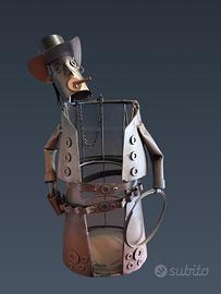 Vendo portabottiglia decorativo a forma di cowboy, realizzato in ferro con lavorazione sagomata. Oggetto molto originale e d’effetto, ideale come complemento d’arredo per cucina, taverna, enoteca o angolo bar. La struttura contiene una bottiglia e la valorizza molto bene anche come semplice elemento espositivo. Buone condizioni generali, come da foto. Adatto per: •arredamento rustico o country •idea regalo •esposizione bottiglia vino Prezzo trattabile